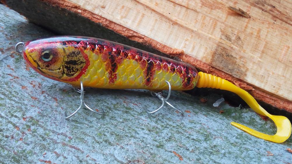 Ввиду того что во многих северных поездках стреляли разные поверхностные приманки вроде вокеров , глиссеров и прочих кроулеров , решил сделать вот такого Бакса (если в терминологии не запутался