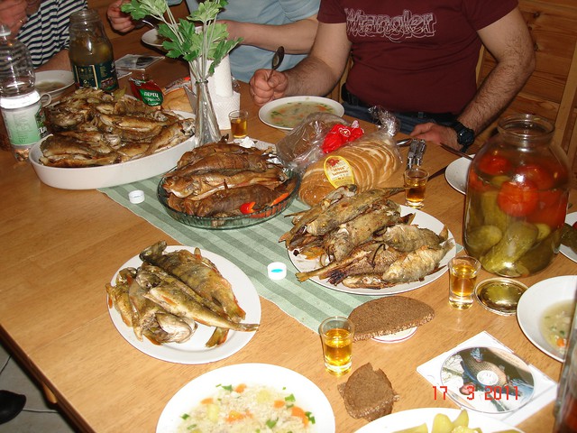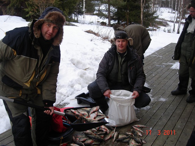 ну поподалис и маленкие ну они уходили обратно восвояси,приехали мы домои приготовили ужин как всегда приняли трапезу ну и потихонку начали собиратся так как паром в 1 ночи отходит обратно в талин,время уже 9 вечера а хозяика кемпенгов незвонит нееедет,странно както забыли про нас совсем мы подумали в етоге я думаю так и получилос еслиб мы сами узе непозванили и непредлозили приехат и денег с нас получить,оказывается хозяика загуляла неподецки и оказывается в ее компании был и рускии парен которыи был у нас переводчиком по телефону,конечно долго и упорно они думали ктоже всетаки к нам приедет за денгами то она сама потом вроде как брат ,ну оказалос что из них узе никто не в состоянии был приехат ,хорошо что у нее ест папа и он окозался единственым кто смог до нас доехать,вообчем расплотились и поехали на паром и до дому до хаты,вот на етох нотках наша рыбалка закончилась,удоволствие получили огромное,и чтоб незабыть огромное спасибо АРНИСУ за соучастие в организации етои рыбалки,при встрече шнапс и закусон с нас