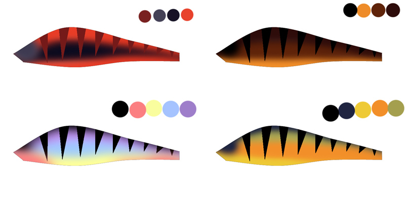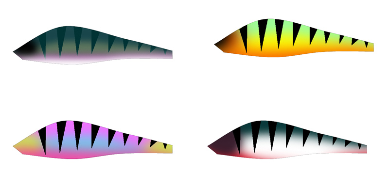 Перед покраской воблеров делаю эскизы что бы потом не думать, а то как берешь в руки аэр так все цвета из головы вылетают. Хочу показать вариации на тему окунявистых. Может кому что понравиться.