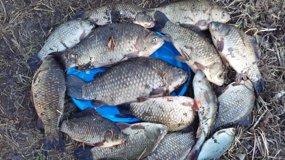 Вчера не смотря на вернувшуюся зиму,карасик проклюнулся точно по графику.По скоку сам справиться с бешенными не мог водяной глядя на моё сумасшествие изредка подкидывал мне их в садок.К обеду заглянув в него насчитал семь особей.Дальше и он мне ни чем помочь не мог..нашоптывая при этом:поменяй место.Однако лень матушка не согласилась.Дальше ни увидев и поклевки за довольно продолжительное время решил сворачиваться.Спасибо водяному за помощь и всем удачи.