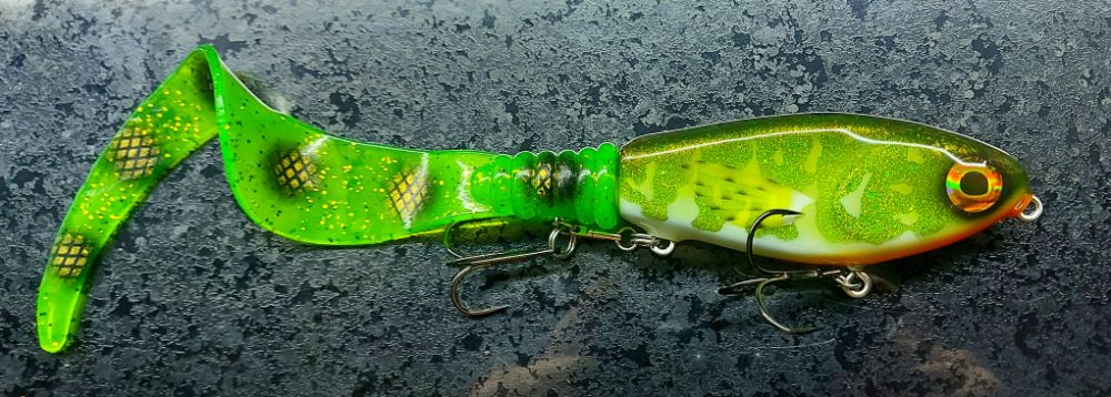 Пару лет назад мне дико понравилась одна форма для джерка. Что получилось с реализацией идеи создать из этой формы нечто не ординарное - смотрите в видео. Да, пока уверенности по этой приманке нет. Одни оптимистичные надежды. Длина тела приманки (без хвостовой лопаты) - 19 см.