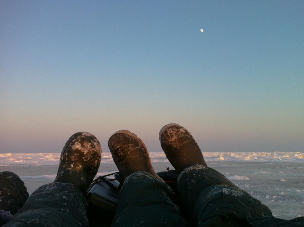 Покрутились на снежике по нескончаемым ломнякам и торосам и вернулись к парням. А у них там прям лагерь разбит из палаток. Сидят себе в тепле окуней жирнючих дубасят пачками, чАйОк попиваЮт, довольные... Кста Димас, где зачетная фотга Фила с мега окунем под килоху? Нуи мы присели, правда ненадолго, подергали окушков плотог хороших. Филовский паравоз уже отчалил, ну и мы подалися. На подходе к базе их нагнали вощем на финише были вместе.