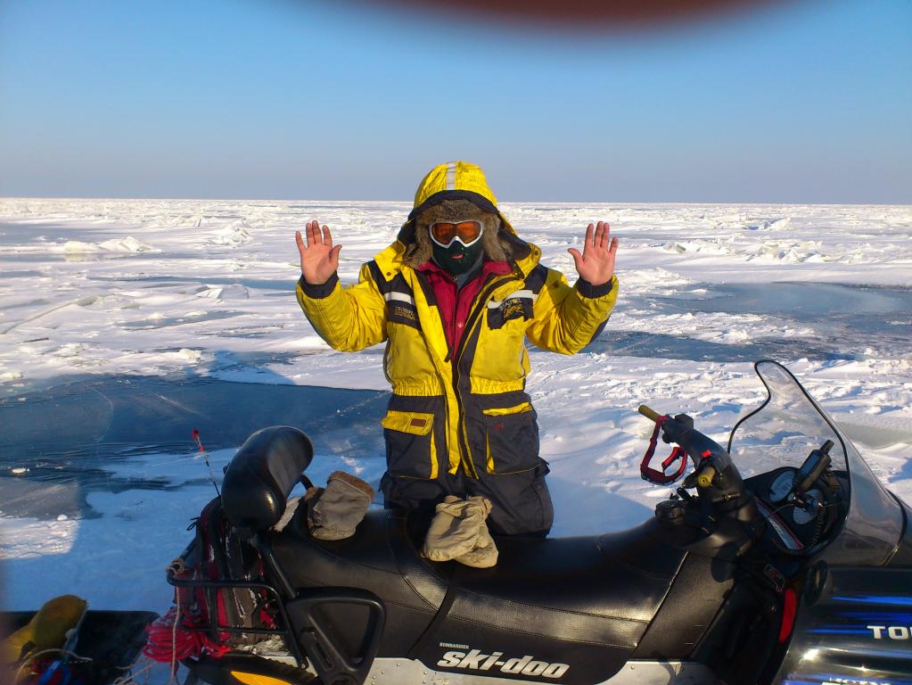 В -34 ещё не ловил,ну когда то ж надо было начинать.Отдельное спасибо "бешеному наезднику снегохода"-в очень нужном месте он нами об торос приложился