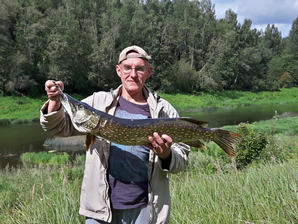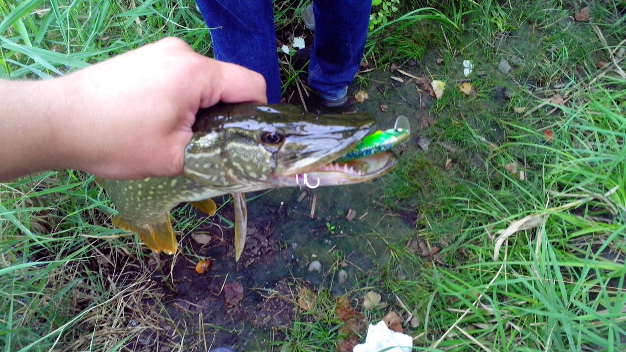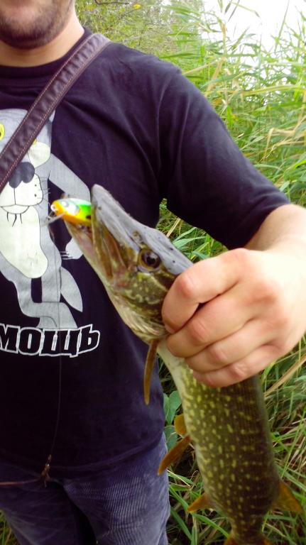 А это приятель в другом месте, на озере, на подаренный мной воблер ловил окуней.