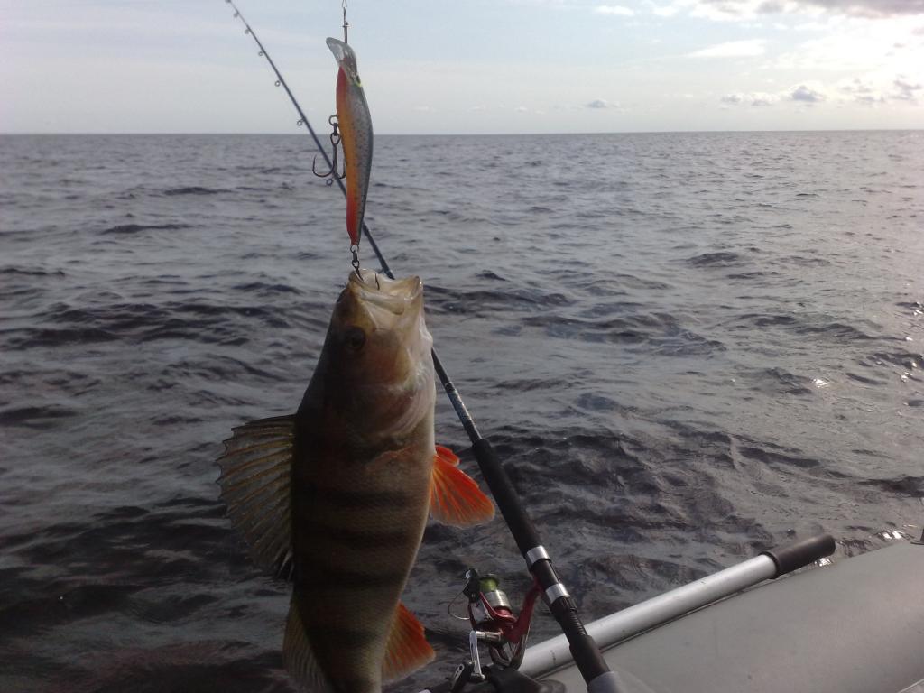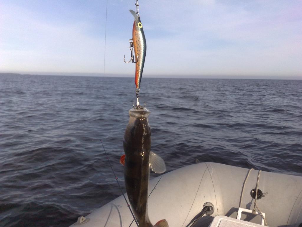 Дорого всем дня. Сегодня посетил Ладогу. Не успев начать рыбалку нагнулся помыть руки за борт и попрощался с телефоном. Порыбачить пришлось всего 3 часа. Начали в 12 дня и уже в 15 часов свернулись. Нужно было ехать срочно восстанавливать симку. Несколько фото. Работал воблер "Бочёнок"