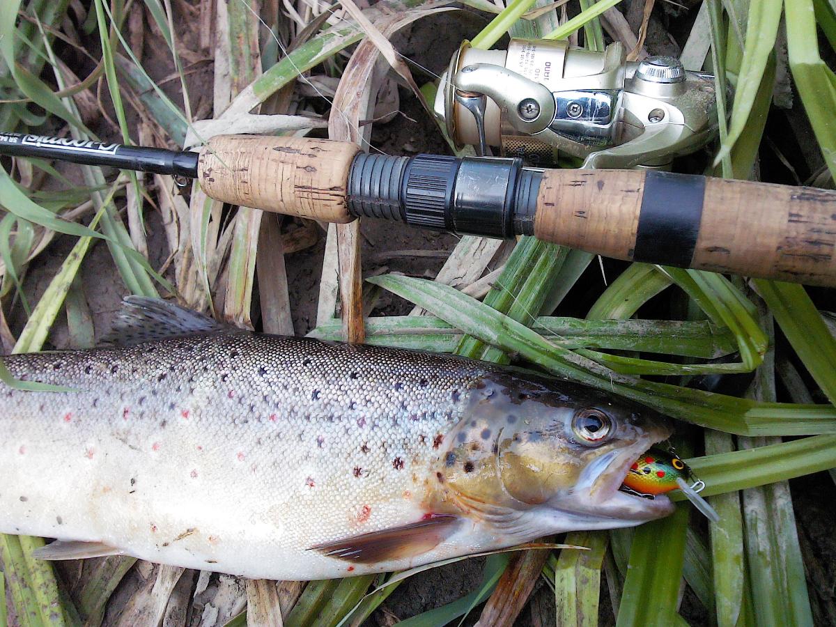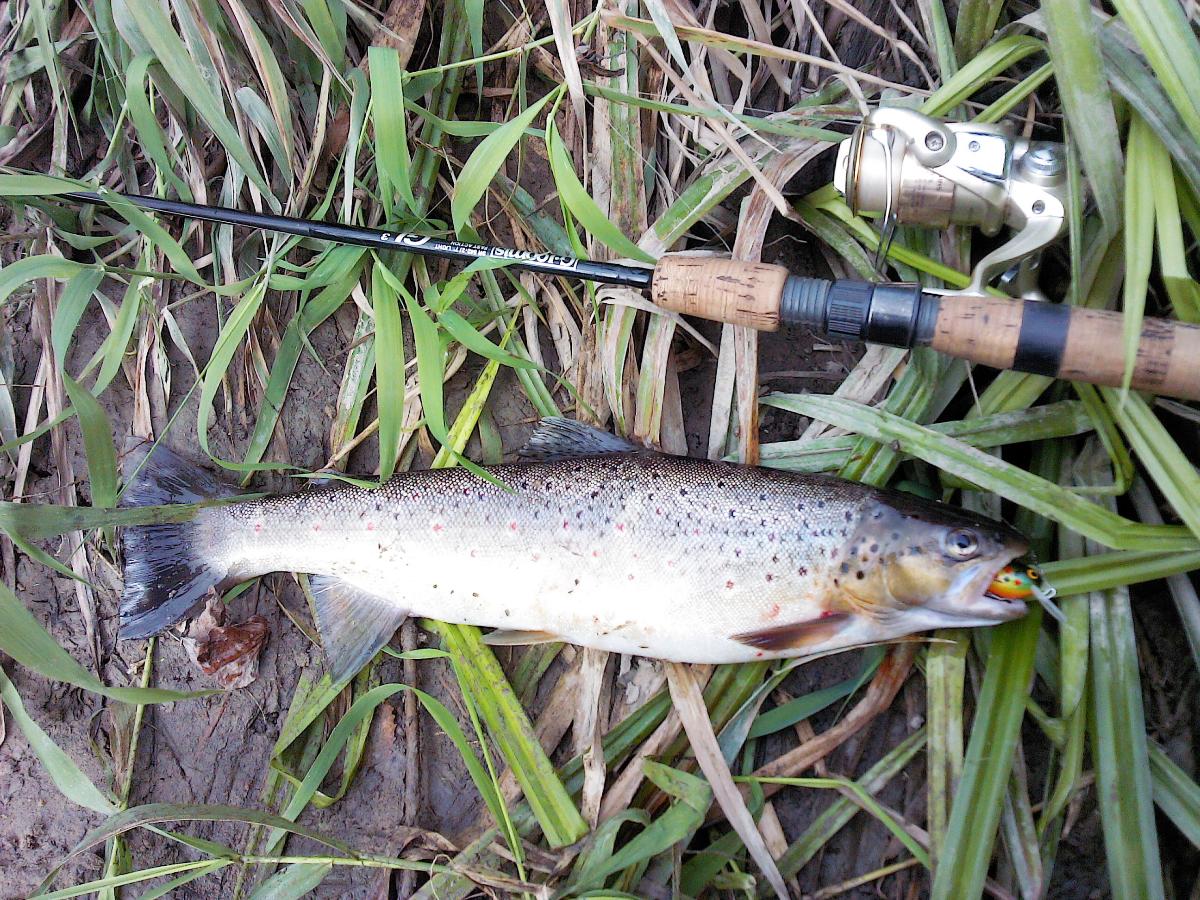 Ну вот и у меня получилось что фотоаппарат был со мной в нужное время. На фото речка в черте города, порыбачил немного между делом. Воблеры с огрузкой в нижней точке мне очень понравились, ну очень!