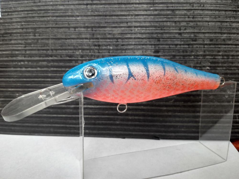 Твёрдое ПВХ,70мм,22гр,броня эпо,автолак 8слоёв,суспенд. или медленно всплыв.Шумовая камера.Покраска баллонами,а вот плавнички попробовал задуть аэром (взял его в первый раз,аж руки затряслись)Надо ещё всё подчистить,извиняйте