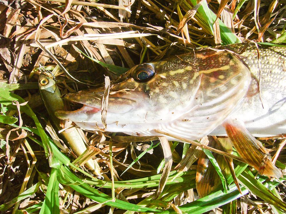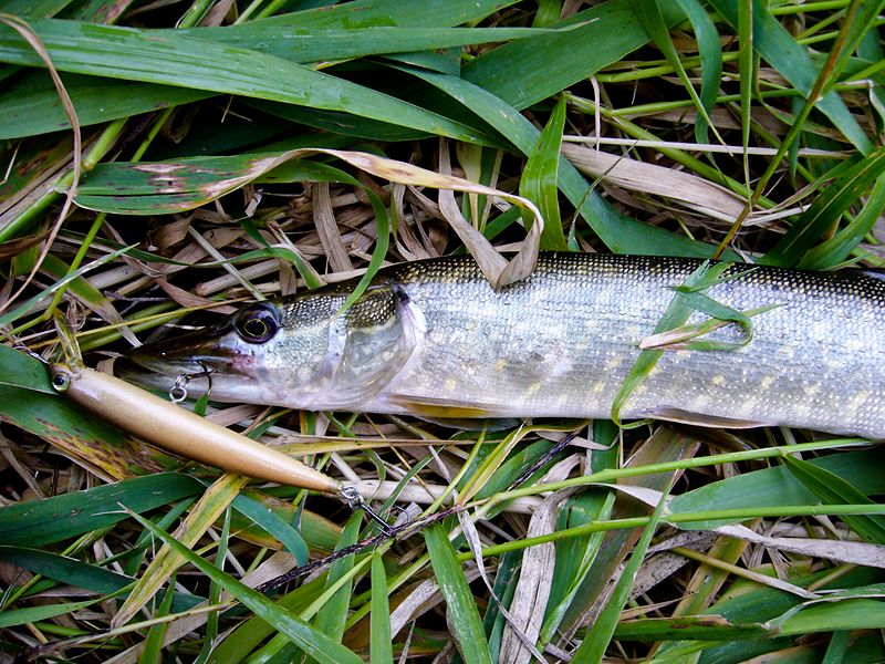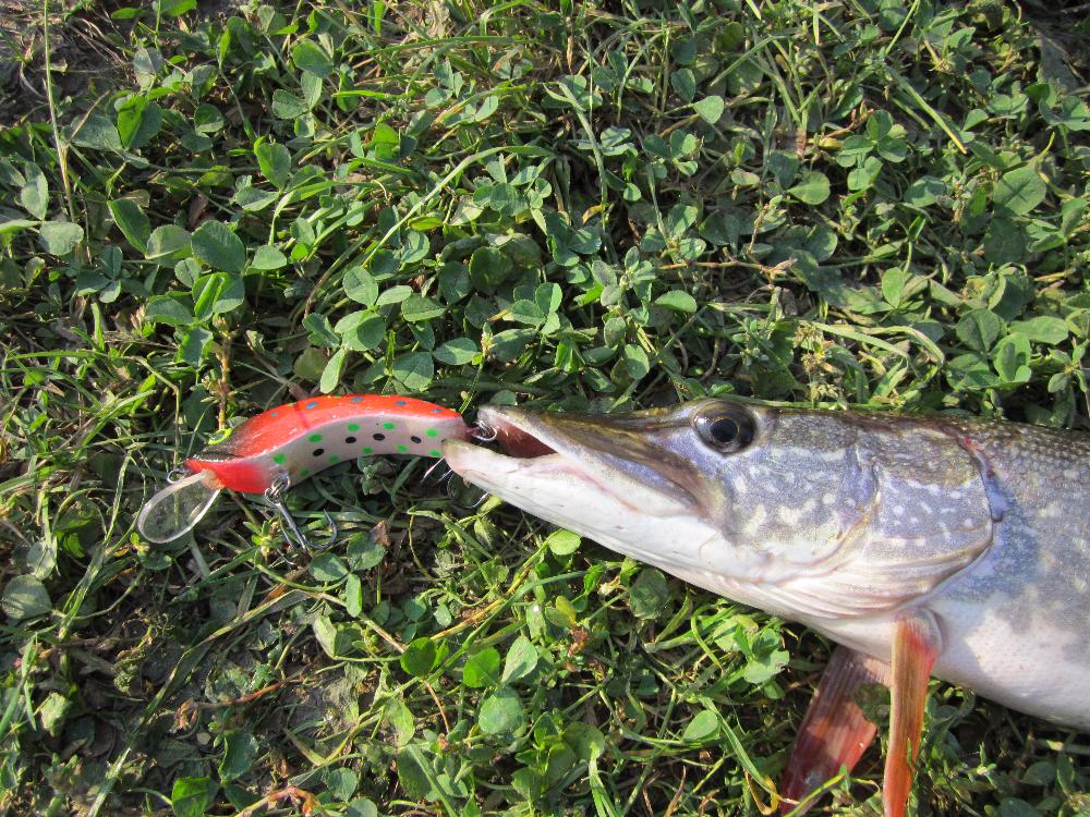 Так же немного половил, щучка попалась на 140-й воблерок, ну и окушков немного(их не фотографировал