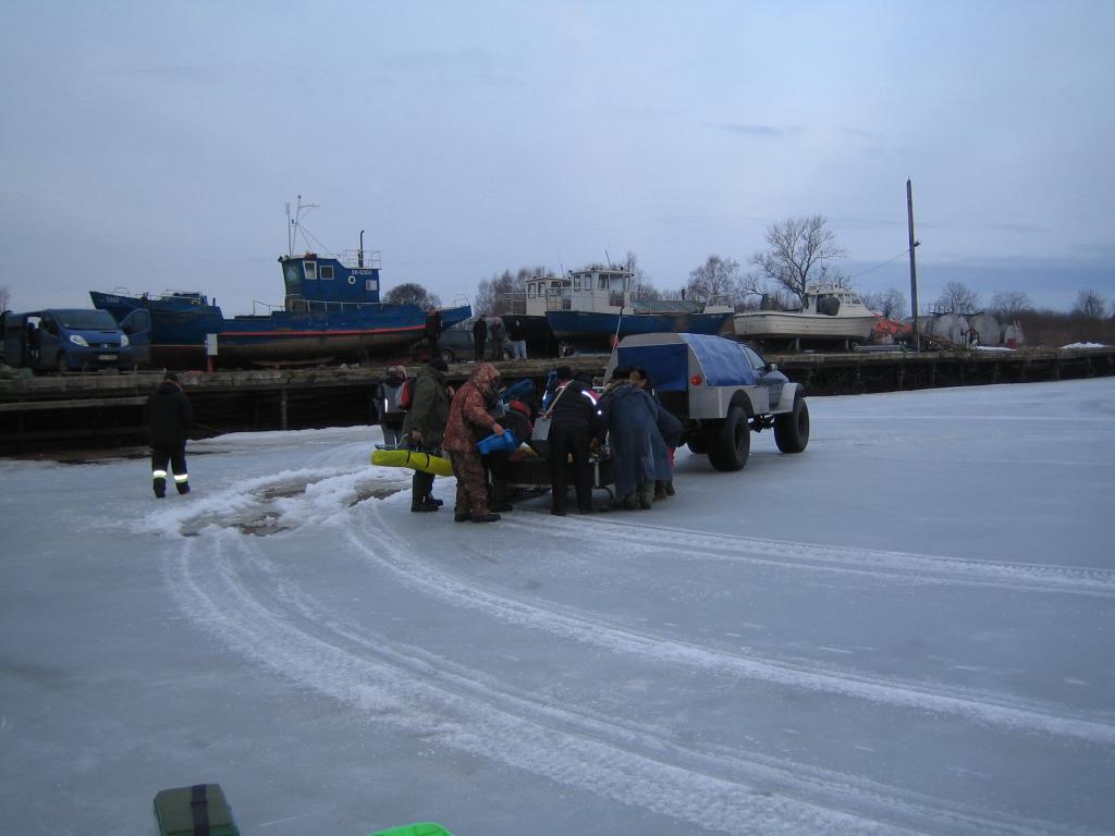 Как обычно, запарковались у Жоры в Kasepaa и на его санках по чистому и крепкому льду доехали в сторону Варнья на 2.5км от берега по прямой.