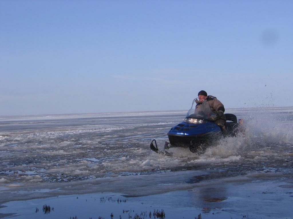 В 6 утра Жора-буранщик вышел из дома и походив пару минут по прибрежному льду изрек:"Извините, сегодня не поеду, так как вчера вечером уже вытаскивали провалившийся снегоход ... идите пешком до метки, ищите белый снег"