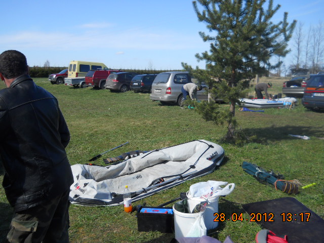 Выехали в пятницу вечером,и сразу все пошло наперекосяк....Сначала загрузились на джип Николая,он оказался с очень убитыми тормозами,пришлось лодку прицеплять к другой машине-Анатолия....Затем я вспомнил,что забыл в гараже аккомулятор....пришлось возратиться..Вобщем итог рыбалки был предсказан еще до выезда....Прибыли без проишествий к 23 часам ....По распросам рыбаков,ловивших в пятницу выходило ,что плотва зашла в озеро...В 04.00 вышли вдвоем с Анатолием на лодках в озеро...Николай проспал рассвет,да и остальную рыбалку так же...Была и прикормка,и различные виды приманки и удочек разных 5шт....плотва нерестилась и клев был безобразный...Сильный ветер крутил лодку на двух якорях, и только забравшись в тростник удалось как то разловиться...В обед решили заканчивать это предприятие,тем более по 7кг(как показало контрольное взвешивание в дальнейшем,) наловили...Скидывали лодки с частной земли,где молодой человек лихо собирает с чела по 2евро за ночь на площадке...Несколько фото с озера...