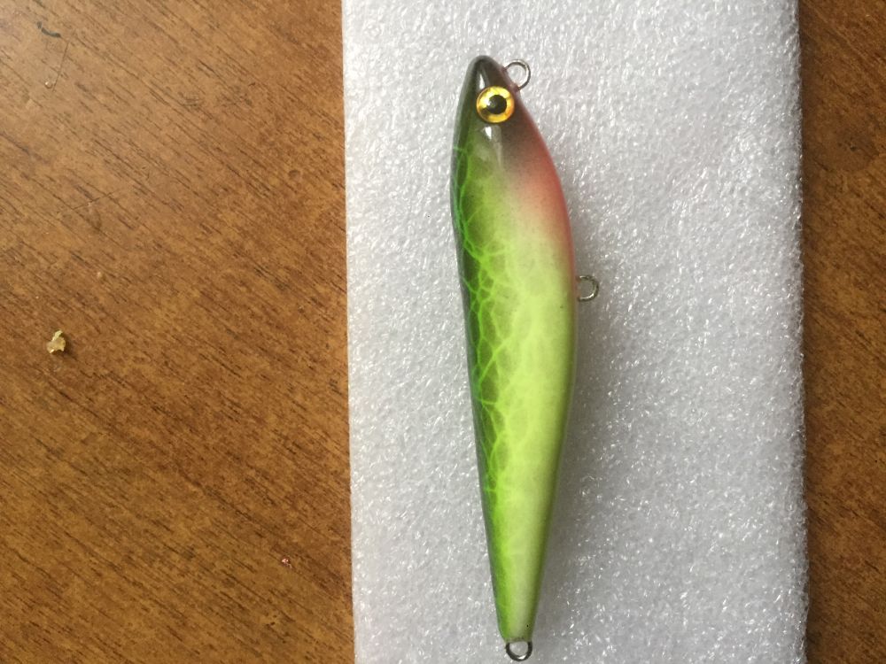второй, вот этот (75см): а ловил на вот такие деревяшки: бальса, 50мм, тонущий, 1кр. - 4,8гр., 2кр.- 5,6гр (это уже с подвеской).