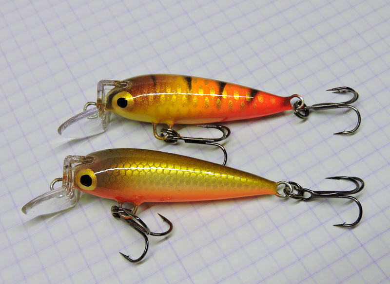 Последние воблеры этого года . Бальса, 50 мм , 5,5 г , быстро-тонущие . Алюминиевый скотч, текстолит, и LV-1 .