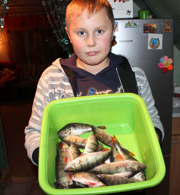 Вообщем кто умел и знал где ловить тот и поймал, а у остальных по пару кг. Крупный окунь не захотел вылезать на лед а мелкий как из пулемета особенно по утру
