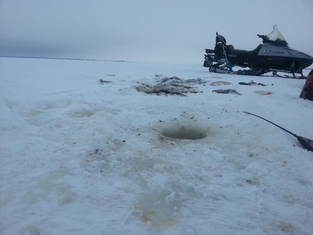 Рыба сегодня категорически и бесповоротно переставала клевать,как только прикорм засыпался в лунку.Это отметили и компаньёны,при разборе полетов,на обратном пути.