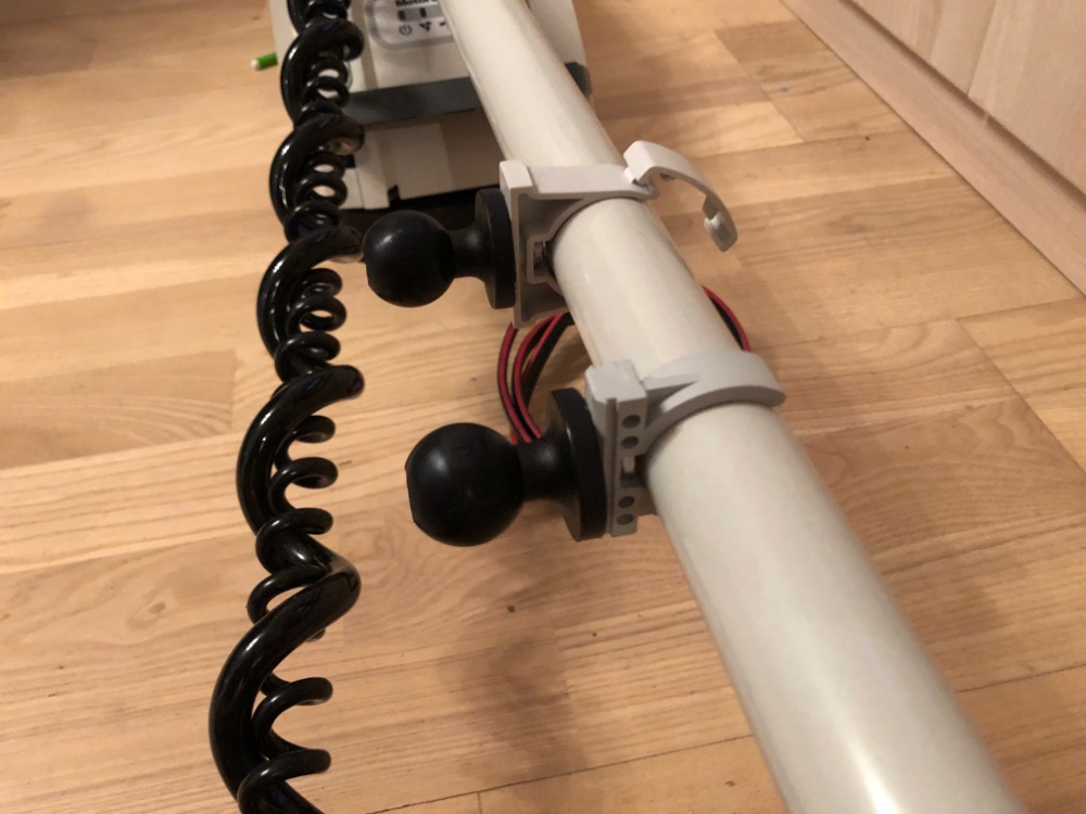 Конечно можно поставить на штангу и крепёж с барашкой и каждый раз её развинчивать, есть и варианты крепления шаров на штанге хомутами - но это бред! Нужен крепёж который не напрягает и в тоже время будет держать штангу на стиральной доске. Думаю крепёж для трубок электрокабелей - идеальный вариант за неимением нормальной, простой и компактной альтернативы....готовых РАМ крепежей я не нашёл.