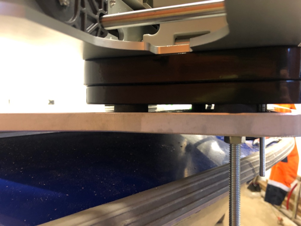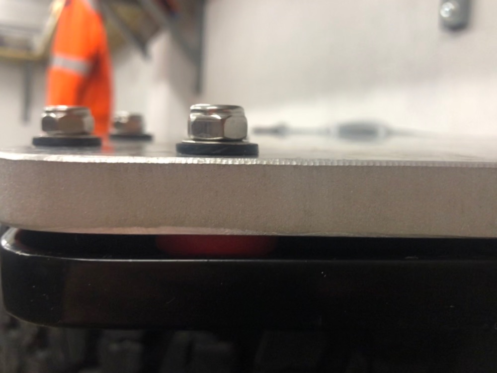 Получил антивибрационные шайбы и прикрутил площадку. Шайбы получились с двух сторон - большие между площадками и маленькие под гайками.