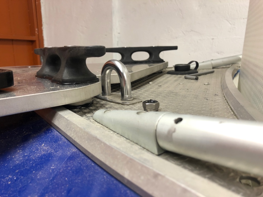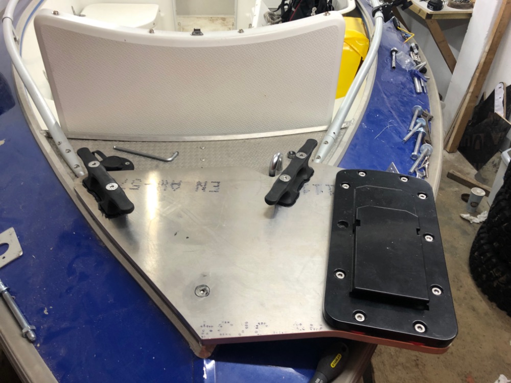 Осталось немного: просиликонить розетку, подсоединить к ней кабеля, просиликонить болты на утках и окончательно затянуть площадку, уложить и закрепить все кабеля в носовом рундуке, купить антивибрационные шайбы и прикрутить быстросъёмную площадку....короче объездил вчера все возможные магазины в поисках мелочей - всё закрыто