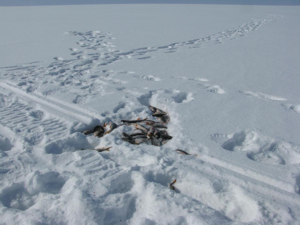Вечером у вернувшейся команды почти все как в субботу – кил по 7-10, и снова одному, но уже не субботнему счастливцу, удалось найти свою лунку и почувствовать настоящий Чудский клев.