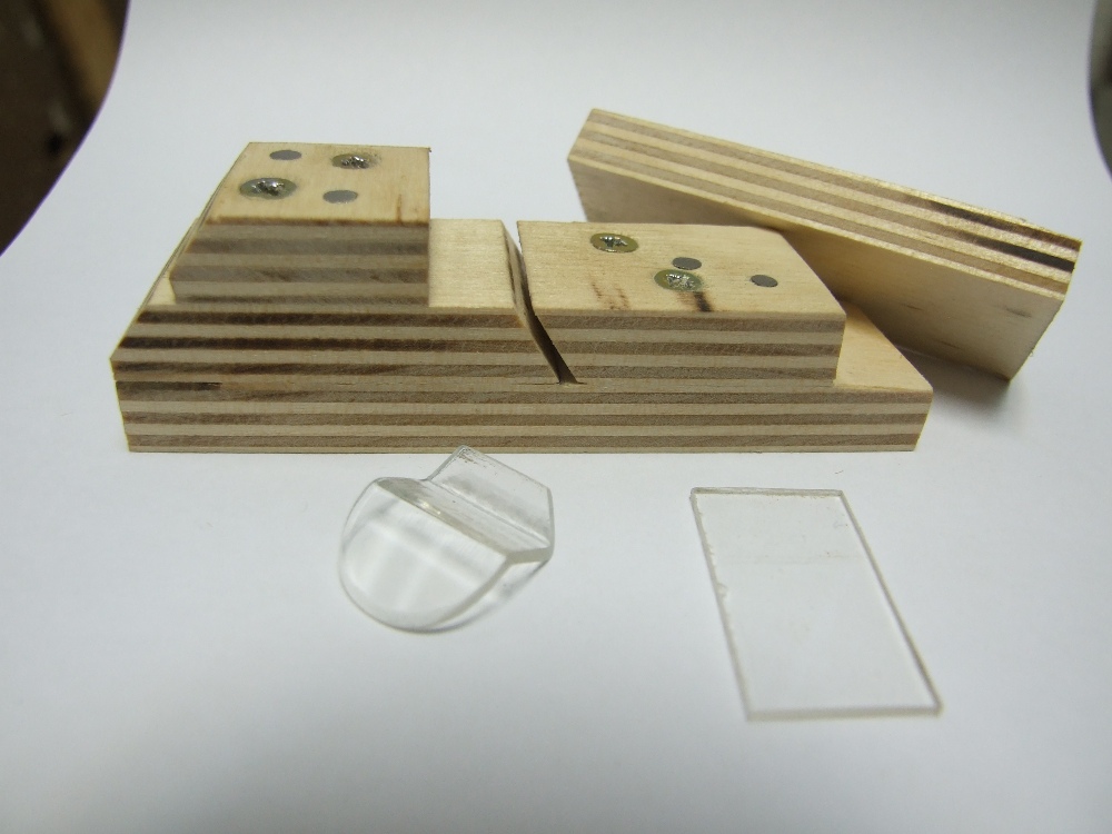 Нет, не пробовал. Только орг.стекло от 1мм. до 2,5мм. С начала хотел сделать универсальное приспособление, но проще сделать несколько под разную толщину и разные углы. После пары тренеровок, штамповать можно быстро и точно.