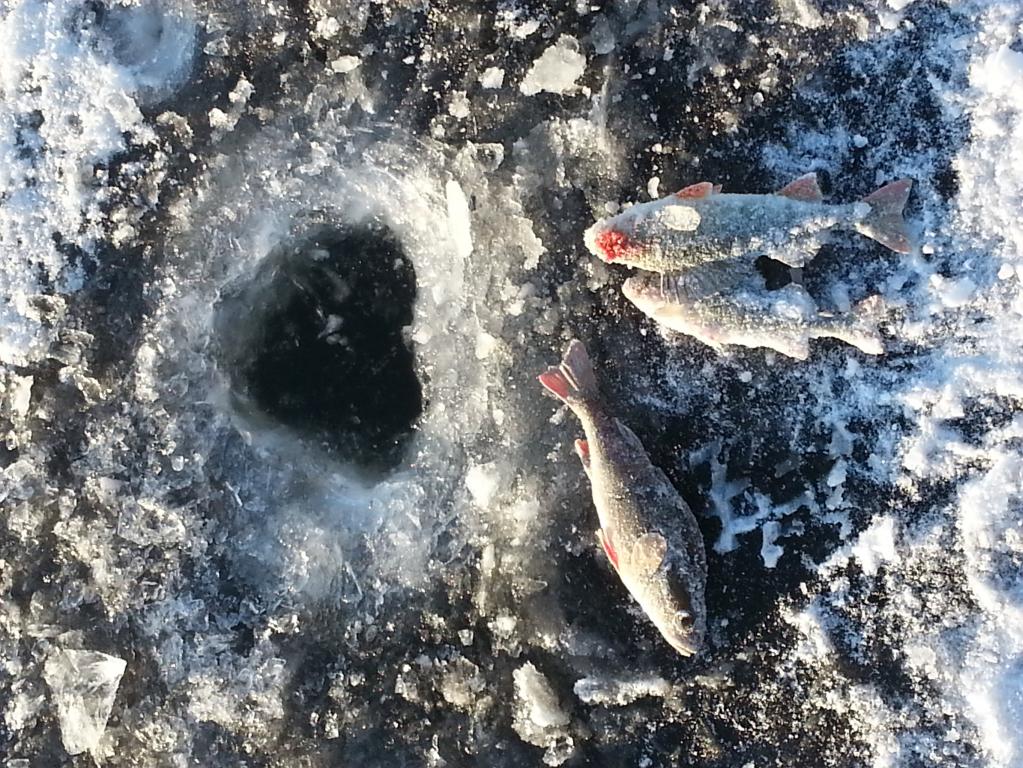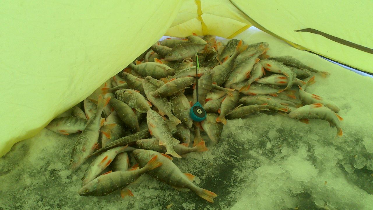 Я нашел свою лунку после 10. Окунь отозвался быстро и вел себя агрессивно, хотя у нескольких из пасти вываливались полупереваренные снетки.