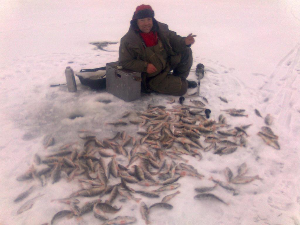 На следующий день рещил прокатится на большое озеро...приехал на место к часам 9..вышел на гору остмотрелса где народ...пообщалса со знакомым местным жителем и решил проитись по старым местам,навсегда оставшимся в памяти ибо много раз радовали отличными уловами...пробурив лунку обнаружил что забыл коробку с блеснами...пипец вот прикольно думаю...слава богу на одной из удочек осталса проверенный рапаловский балансир...Ну так вот...со второй лунки выхватываю окуней 30 за подряд...но размер не радует...решаю дальше мелочь такую не брать..пробую искать дальше,но как то не ладится..то ли время жора прошло...перемещаюсь под самый берег и вспомнив как в юности ловил окуней вприглядку рещаю понаблюдать,что же творится на дне...дно кстати просматриваетса отлично с глубины 1,5 метра..на дне камушки,ракушки но подводных обитателей нетю..и даже игра балансира никого не привлекает...иду немного поглубже...подхожу к местному жителю ...на моё удивление это молодая женщина ловит на мотыля...при мне вытаскивает окуня грамм 300..затем еще одного...вижу ее пакет рядом и начинаю завидовать белой завистью...отхожу от нее метров 100..делаю с пяток лунок которые почти ничего не приносят и решаю идти в берег...отановившись на первом месте бурю новую лунку и опа...есть..ну и помаленьку пошло...бурясь с расстоянием 2-3 метра нашёл свал и чутка поймал...размер конешно так себе..но были и достойные...в 2 часа завершаю ловлю решив что мне хватит на покушать..хотя поклёвки не прекращаютса...странно думаю я...но впереди еще кое какие дела и я собрав окуней двигаю в берег...СПАСИБО ОЗЕРУ!!!