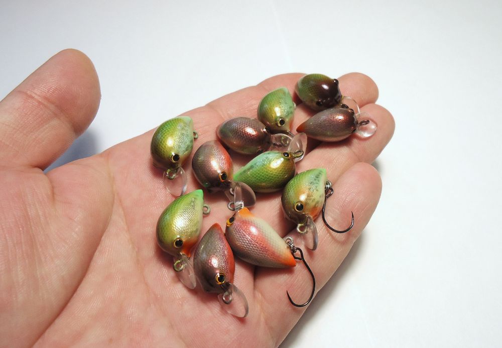 Приветствую мастеров клуба Стриборг! Кренки 23 и 25 мм. S. 2,4 и 2,8 грамм. (По мотивам редкого сегодня японца Bassday Kangoku Crank 27S BS (тонущий). Маленькая экспериментальная партия. Двух самых удачных использовал для приспособлений, для более-менее точного копирования, потом. Материал: твердый пенополистирол. которому 30-40 лет. Арматура: проволока 0,8 сплав титана (у приятеля на внешн. стене баньки висела, десятилетиями, в лесной глуши, на пасеке, я увидел - ну и "отжал" "немножко")). Легкая, гибкая. Огрузка: дробинки свинцовые (примерно 4 и 5 мм). Лопасть: поликарбонат 2 мм. Клей, защитные слои, эпоксидные смолы. Краски: нитроэмали. Лак, финишный лак: стойкая к УФ смола эпоксидная (ювелирка). Для лета, середины лета, голавликов из под завалов, приямков выманивать. Колечки, крючки: для проверки на реке - произ-во Китай, (крючки 200 рублей за 200 штук. Но понять их пока не могу - изготовлены на вид качественно, не разгибаются, не хрупкие, но то реализация поклевок спортивных голавликов 100% за день, то 10%, через неделю)), возможно, что руки кривоваты)).