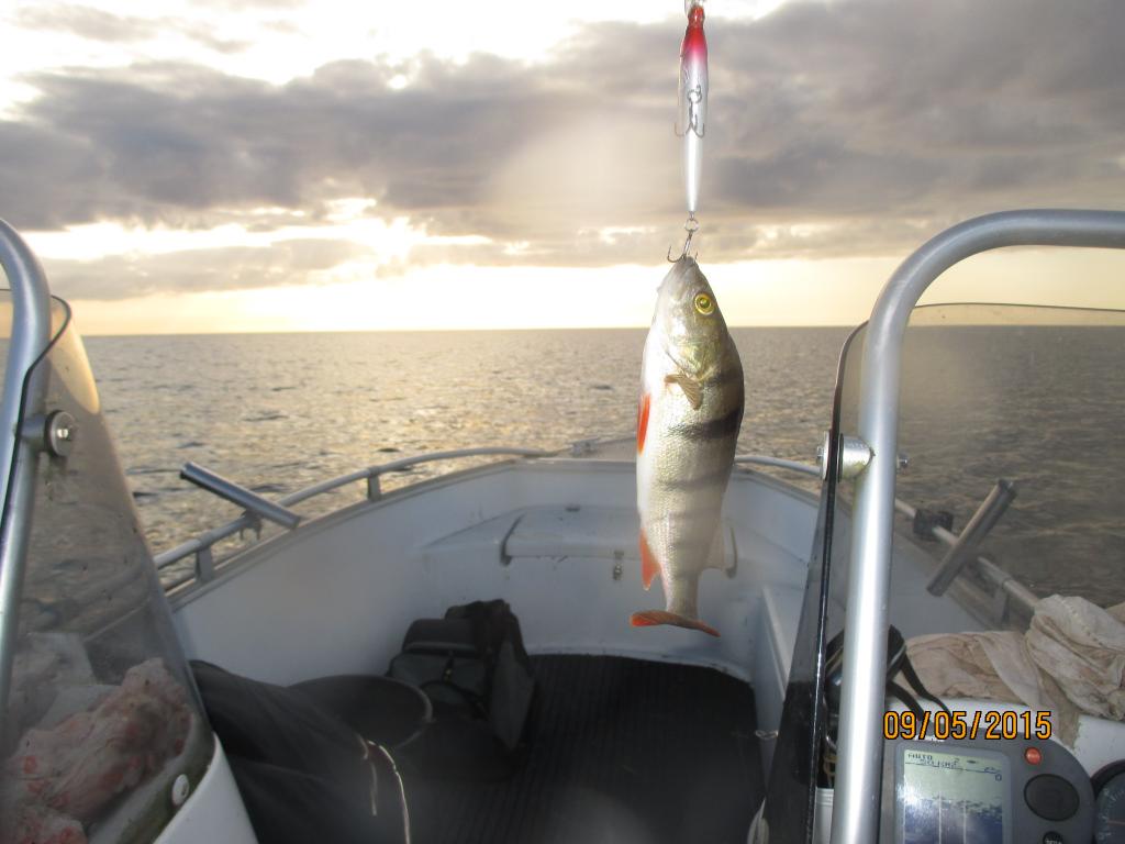 В субботу встал до рассвета, в 4 уже на воде , погода манго , солнце только обозначается на горизонте , ветерок с берега , ход нормальный .Поставил сразу хит прошлых выходных , мепс 4 ,а в ответ тишина , только сопровождение окуней до лодки , поставил более мелкий номер , окушарик который сопровождал до лодки стал цеплятся , но не всегда , иногда так же упорно шёл до лодки и на остановке блесны , разворачивался и уходил , между делом цеплялась и щучка , пару штук подрастать отправилась , четырёх взял до дому , также штук пятнадцать окушариков .В 9 утра солнце достало , да и рыбу видно тоже , свернулся до дому.