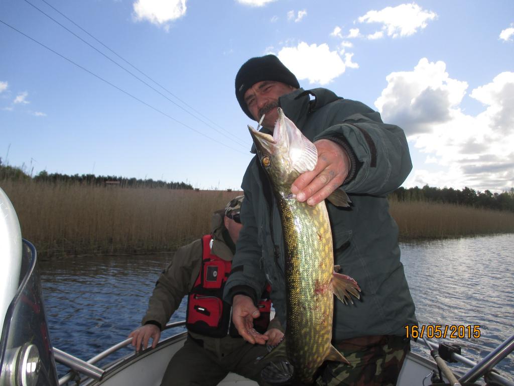 Размер не велИк. Но приятно. Клевало правда не долго. Как солнышко очистилось плностью от тучек, так всё и замолчало. В итоге несколько окуньков и 4 щучки примерно килошки отправились в коптилку. Ну очень хотелось свежачка.