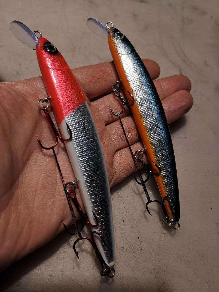 Если собирать из двух половинок, то можно сразу заложить полость под огрузку. После грунтовки в емкости с водой подобрать огрузку (прицепить к заготовке весь обвес: тройники с кольцами, лопасть, поводок,). при такой длине около 1.5 -2х грамм необходимо заложить для последующего фольгирования и слоев лака. Со стороны спины воблера сделать отверстие в полость через которую залить необходимый вес свинца. Получится очень близкий к суспендеру воблер.
