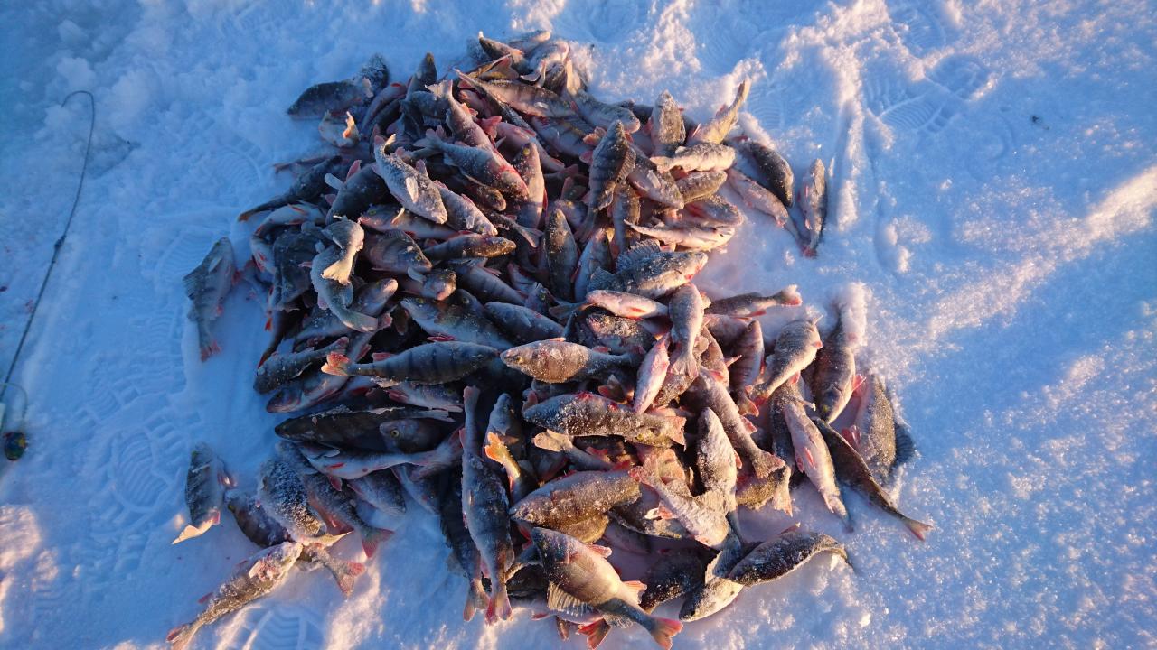 А теперь собственно и отчёт - Первый день было скучновато от 5 рыбок до 7 кг, проверяли старые точки, некоторые работали, некоторые молчали, насверлились и поехали себе и приехали на ночлег довольные с мечтами что следующий день как всегда будет лучше, а потом долгие беседы за столом и крепкий сон сидя после впечатлений, комуто удалось доползти до кроваток, потом пол ночи, перевязка мормышек и вот снова утро прекрасный рассвет 18.01.16. И мы тем же составом подпригивая по льду в санях, на новом снежике от нашего штурмана прибыли в секретное место, немного поискав кто то нашёл свою заветную лунку и просидев на ней весь, ещё не совсем длинный, день унес с собою 15 кг ( ну это я для Авоту и кимоно), а другие поставив палатки с комфортом отдохнули прикрыв дно пакета - 3 кг прекрасной плотвы и окрепшими и подросшими окуньками