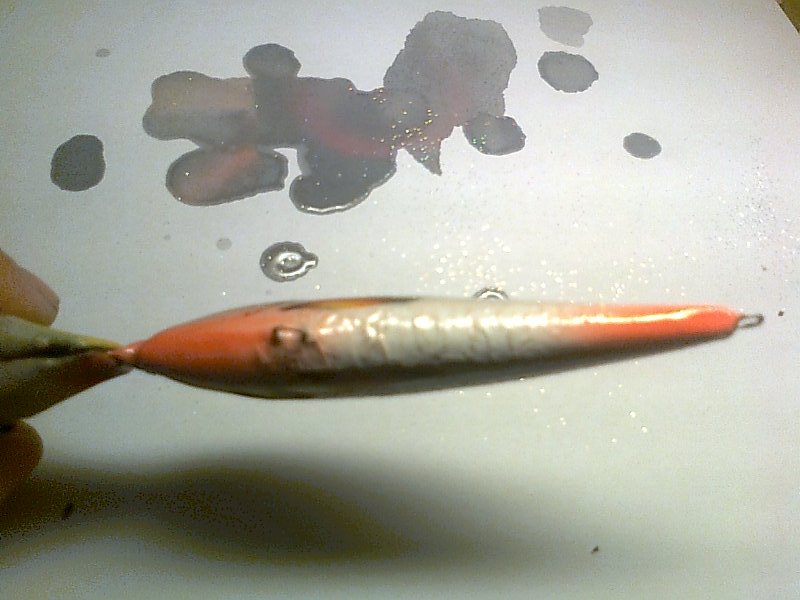 ... лак ЛВ-1 поднимает краску, но не всю в некоторых местах , краска таже что красил и раньше, водный акрил, что может быть? Грунт белые гранулы пробионата, на фольге вообще нет никакого грунта,на одном воблере поднимает, на другом всё нормально . Может недосохла краска,или толстый слой...? Но где покрыта оранжевым там ещё толще слой краски