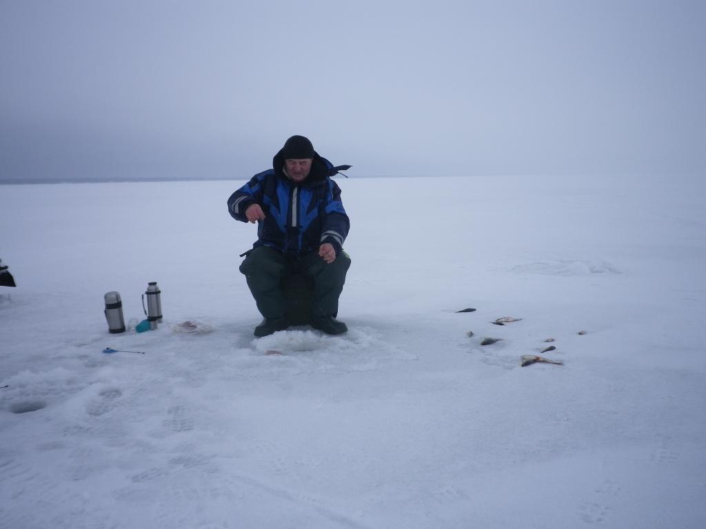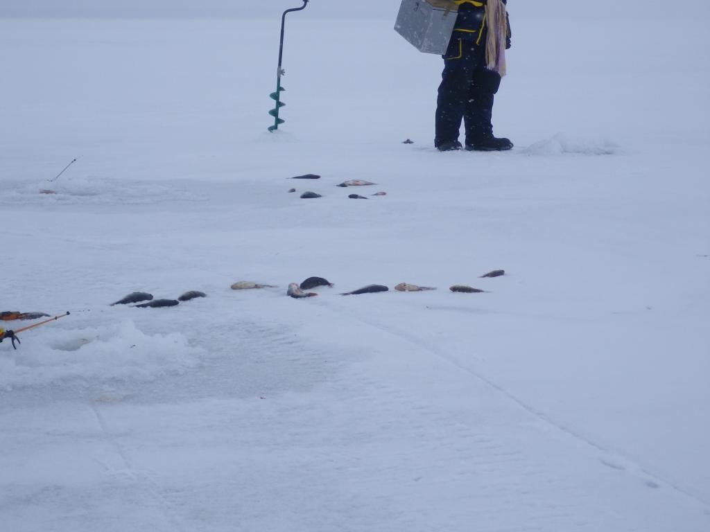 Во второй день поехали в Нину. Что-то я не припомню, когда в Нине было так мало народу. Практически все машины с латвийскими номерами. Сразу пошли на 3 км (в четверг приблизительно на этом расстоянии неплохо отловился один знакомый). По пути пару раз пробовали в эротических местах - глухо! Пришли на три км, обалденно красивый залом. Обсверлили. У Димона одна плотва и один окунь. У Сашки два ерша. У меня с одной лунки окунёвый бонус грамм на 300 и ещё один грамм на 150. И... всё!