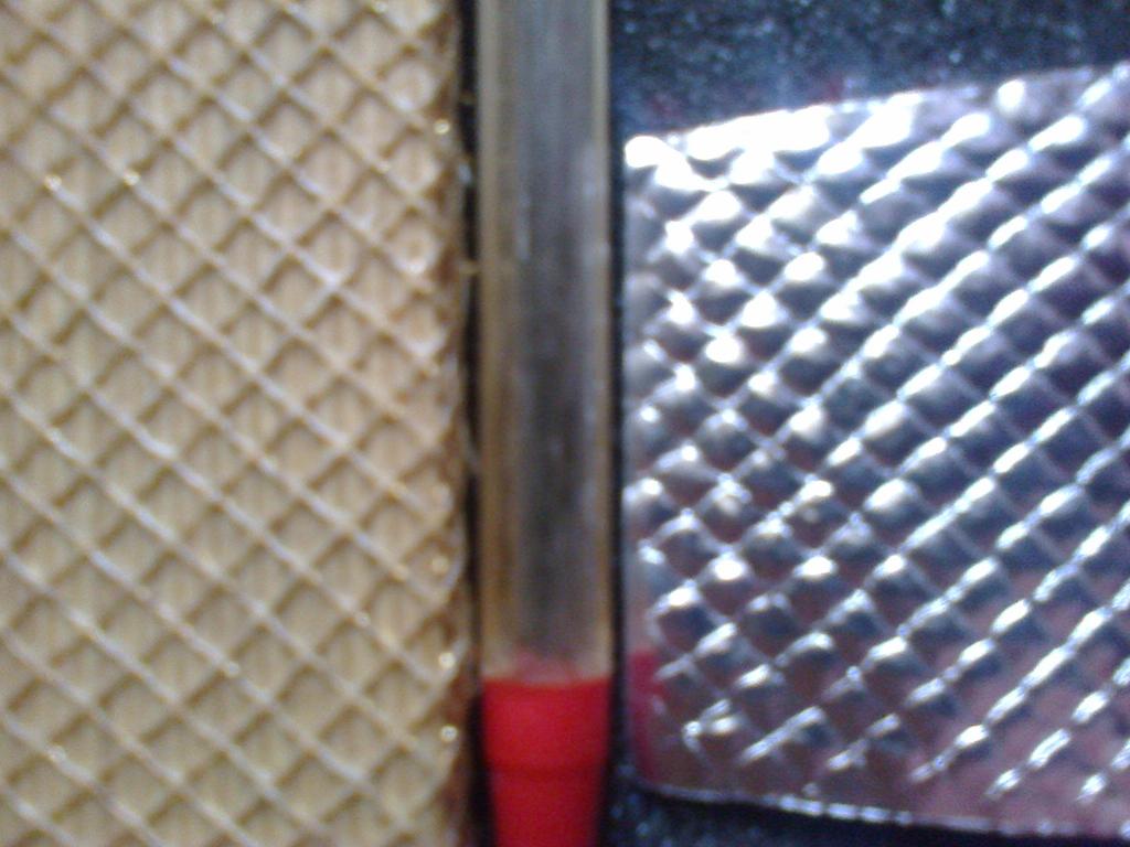 Я покупал ведро-корзину для бумаг, с такой высеченной сеткой. Оттиск на фольге делает нормальный, но мне больше нравится сетка от белья (которая как соты) наклеенная на ДВП и пропитанная эпоксидкой.