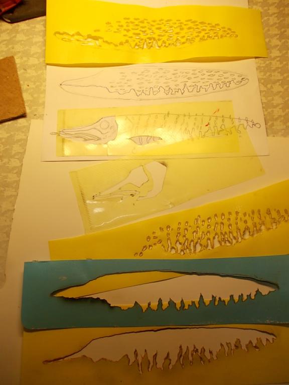 Затем из папок для бумаг, или обложек для тетрадок, сделал трафареты, при помощи пионерского выжигателя (сорок лет ему уже, а он всё работает