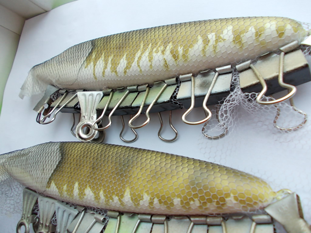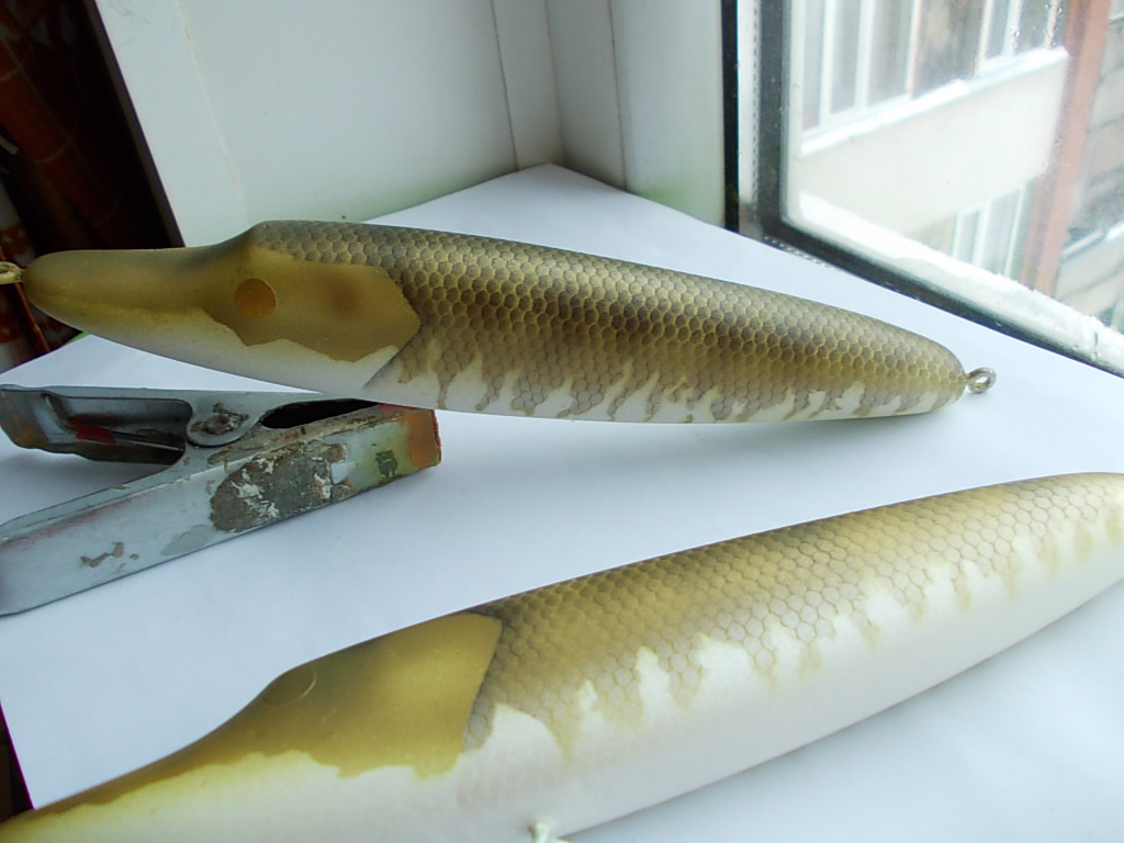 ЗдОрово, конечно! А трафареты как-то крепятся в воблеру или просто удерживаюся вместе с ним в руке? Но ведь форма воблера сложная. С боками ещё понятно, а голова? Такой трафарет как плотно прижать? А если нет, то он отстаёт от корпуса и как тогда нанести чёткую линию?Stekloduv писал(а):трафареты режутся разные, под каждый цвет, свой...