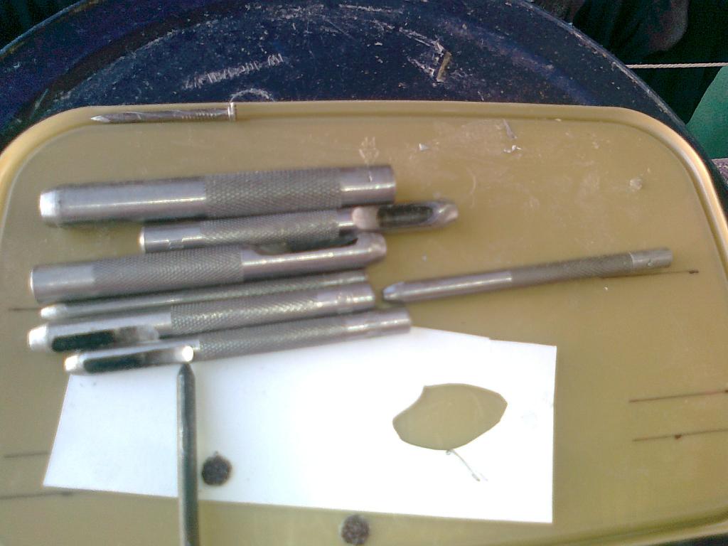 Хорошо, я тогда как Стеклодув буду бурчать. Про клеймо (можно железным клеймит, резиновым или пластмассовым ставить оттиски ) писал я вам друзья уже два года назад (первое клеймо для библиотеки отца я лично сделал в 13 лет, делал на торце твердого дерева, породу уже не помню, делается инструментом под названием штихель, уже выкладывал его вид, штихелем делается и на металле. Делаете тафарет, иголкой через трафарет накалыаете на дерево или металл и режете, не бойтесь все довольно просто ,пару деней обучения и сделаете любой сложности ,если не пресыте и будете трезвыми)domowoi писал(а):Привет всем!