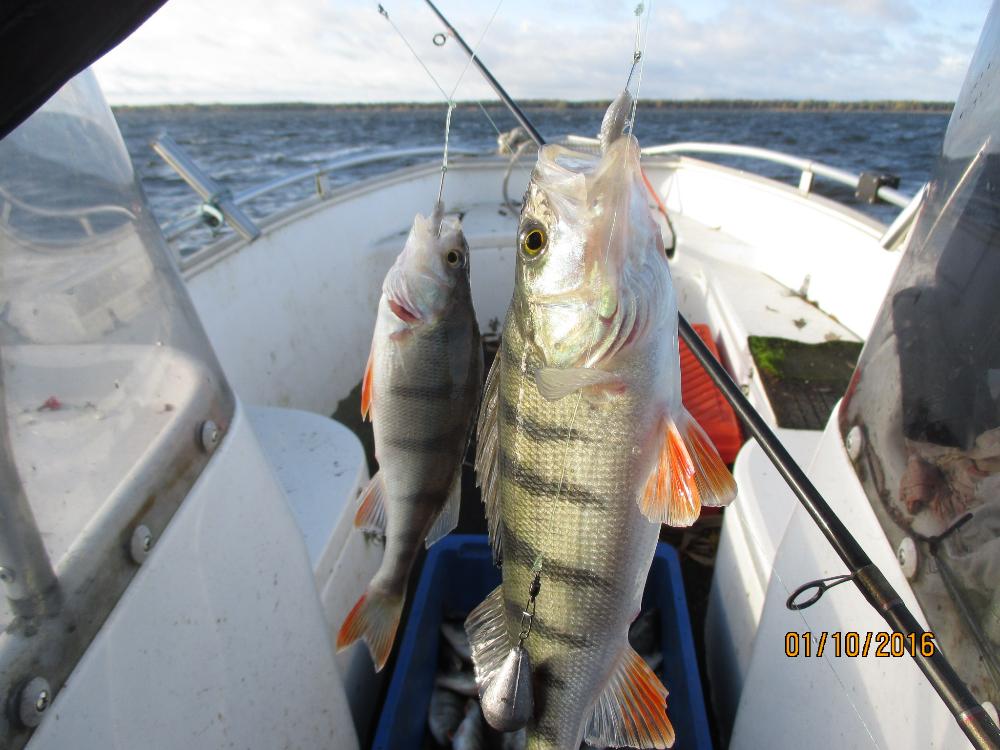 ..всё понравилось даже довольно свежий ветер не особенно мешал, окунь красивый в основном батончики,трудовые, у Светы бонус- щучка, ровно 1кг..