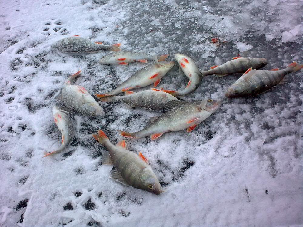 Суббота, весь день туман, несмотря на лёгкий ветерок. На старые лунки не пошёл, искать начали 1,5 км от берега. Напарники в итоге ушли выше, а я зацепился на одной полянке за гуляющих внизу полосатых. Опять повторилась история предыдущих рыбалок, окунь активный где-то с 11-ти до часа дня, потом становится всё ленивее и после 14.30. практически перестаёт клевать. В этот раз весь размерный брал железки в рот, временами очень активно, поклёвки такие, что чуть удочку из рук не выбивал, неоднократно для вытаскивания подвесного тройничка приходилось пользоваться летним экстрактором. Были поклёвки и на подмотку и на сброс колебалки. Штук около ста отпустил подрастать и в итоге отсортировал 33 головы общим весом 5,7кг. В третьем часу, вытягивая как думал очередного шелупонца, обнаружил на тройничке блесны небольшую ряпушку, удивился.