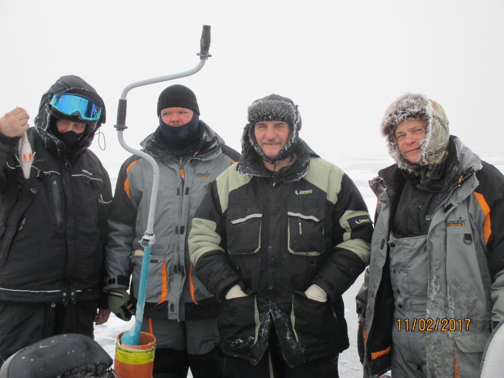 По темну встретились с Сергеем и товарищем его, и двинули куда то на секретную точку, которая вчера по разговорам давала раздачу. Не всем правда. Разделились там групками, и давай лёд дырявить. Одна лунка, вторая, третья. И вот в третьей при 97-ом поднятии блесны паклёвка. Но, ять, размер меньше блесны. И понеслось как с пулемёта. И ерши туда же лезут. Собрался уже уходить, а тут уверенная поклёвка в руку. И 300-грамовик есть. Сразу за ним 500+ граммовик, и один чутка меньше. Всё думаю. Раскачал луночку. Но, или рано подумал, или ещё чё там, но опять налетела стая пииздриков и выгнала меня с лунки. Дальнейшие перемещения всё таки принесли удачу, но только Филу. Минут 25-30 он оторвался хорошо.. Ну, а мы с Янкой только подбадривали его. Нет, нам конечно то же что то перепадало. Но это как объедки с барского стола