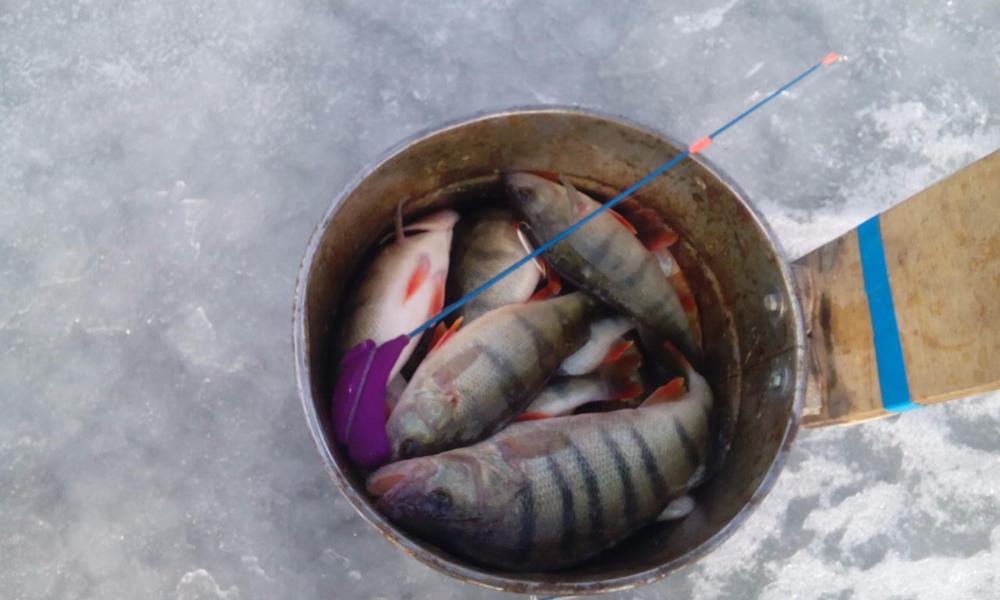 берёзовым соком , да нет шутка, нашёл он свою заветную лунку с красивыми окунями, хотя ведь не собирался ехать