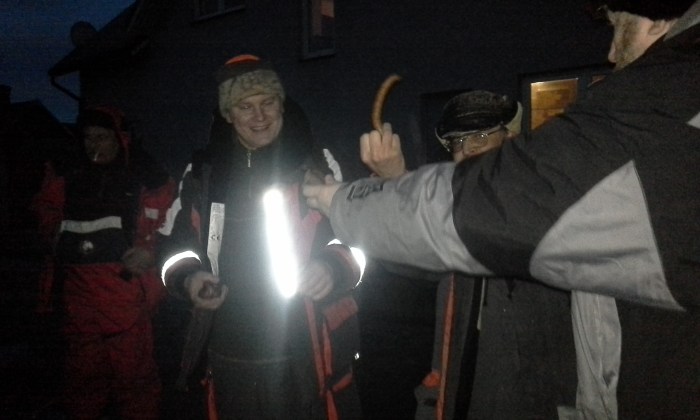 Выехали тоже не по расписанию в 6.30, а минут на 40 позже. Перед стартом наш елгавский охотник Андрей разделил среди присутствующих охотничьи колбаски, коих у него было видов пять.