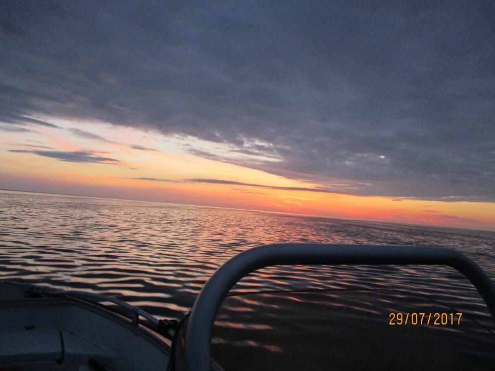 Солнце ещё не взошло, там за горизонтом . Первые окуни ещё до солнца. Ну и солнце показалось , до шести утра даже никто не жужжал в озере, потом уже начали обуривать , решил уйти на дальний кордон благо погода позволяла комфортно передвигатся . Встал на баночке , первая лодка ловила на глубине , у меня на вертушки с меляка не плохой окунь проскакивал, подходили лодки , сначала всторонке стояли , видя что я чего то потягиваю , всё ближе ко мне , но гирляндой на меляке, да среди камней не сильно покидаешь .