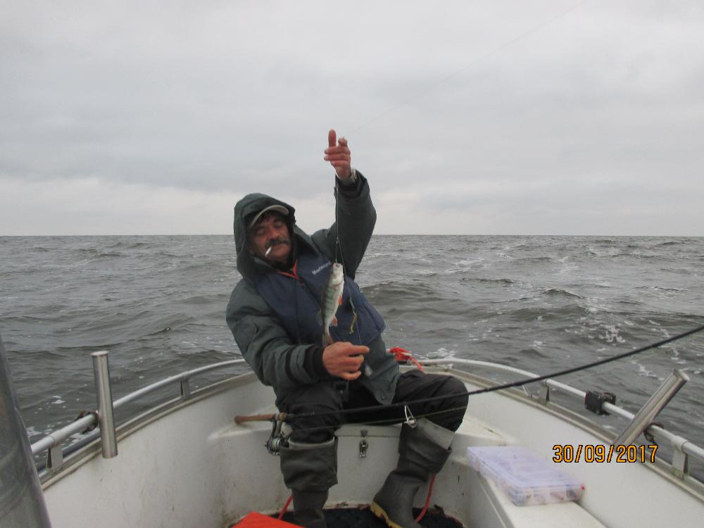 Встали на своём месте , редкий мелкий окушарик , хотя парочку было средней упитанности .Вообщем плохо , не то , сменили место , ушли мористей , но там такая раздувалась ... опа , что лучше в наше место , хоть там что то да клЮвало , рядом и чайка начала рыбку хватать , и мы так подстроились , но что то с размером вообще плохо , одна мелочь , хоть и поклёвки на каждой проводке , из сьедобного с десяток окушков , остальные меньше ста грамм . Вот тут то и вспомнилась икорка вечерняя на столе , детский сад и клевал .