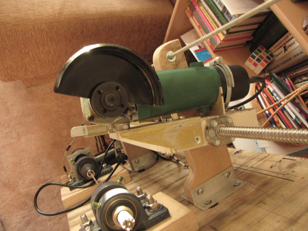 А что за движки на приводе стоят и сколько оборотав выдают? Можно увидеть несколько фоток верстата где стоит болгарка и деталей каторые ее перемещают.