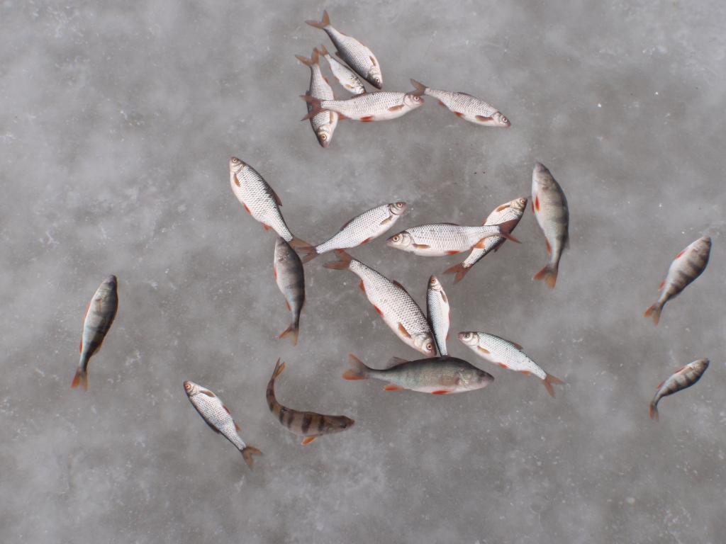 Не проклюнулись мои прикормленные лунки,ни вчера ни сегодня. Метрах в 200 отработали две лунки по пару минут,успел выдернуть около 20 голов и усё. Рыба клюёт не плохо,но кто то её гоняет,а может сама носится в стаи сбивается. Ещё льда сантимов 20-25 есть,значит повоюем!guntars74 писал(а): Прикормил,завтра проверю