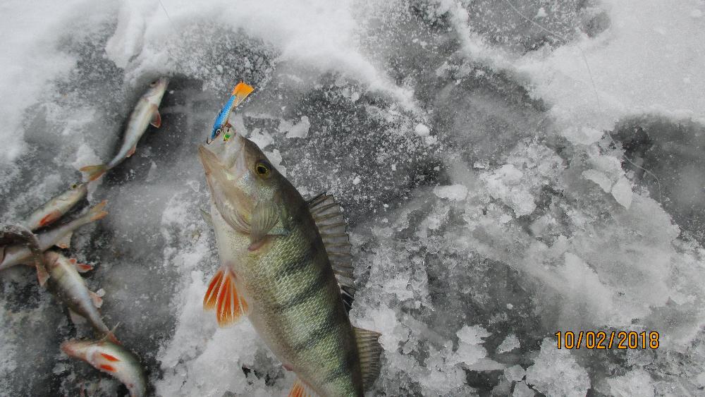17.18 выход с казепа. Cнежка добавилась и лёд подрос, начал поиск с 12 км . Окунь молча наблюдал за полосканием железа, только изредка катались матросики. К 14 часам бурится больше не было сил да и смысла в это время я был уже на 8 км, сел на мормышку плотка отозвалась сразу. На второй день едем сразу на 8 км, рыб начал брать с 10 и на опускание. В 11 завтрак был окончен и клёв стал размеренный на удивление 30% был окунь, размер от 150-500 и зачем я первый день бегал с железяками. Из моих 6 рыболеев бонусные подарки были у каждого, кто сидел на морышке. Максимальный улов за 2 дня 14 кг