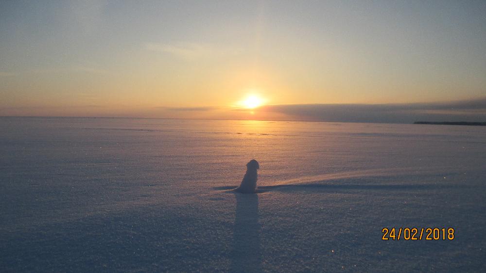 Вот и я с напарником посетил ваш Байкал. Все мне, кто уже побывал конечно, говорили, мол псих, куда ты прёшь, рыба не берёт, ходить тяжело, хочешь сдохнуть, так сделай это дома, к чему знакомых грузить проблемами.... Но у меня ж традиция на день рождения ездить кланятся озеру в самую глажь. Да и поехали аж на 4 дня. Это конечно не на пять дней как в прошлом сезоне, но тоже нормально так, рыбку поискать. Со среды на четверг стартанули. Температура по мере удаления от дома падала а изморозь и туман росли. Вот же напасть, ведь в изморозь не клювает - проверенно. В месте встречи, чуть за Муствээ градус уже упал до -22°. Часик подождали подельника из Нарвы и поехали его Хаски выгуливать. На пятом с копейками км. тормознули. Где то недалече от прошлогоднего места ловли плотвы. Трещины конечно больше нет, да если честно, то вообще кроме буранок ничего нет. Хоть бы фалос как Саше встретился, ан нет. Уж я б его, этот фалос, обсверлил не по детски. Кругом целина, глазу не за что зацепится. Мелочь пощипывала, а жирняки берибельные, не то молчали, не то отсутствовали. Весь день по честному отловил стоя, хоть и не спал накануне вообще. Даже мелочь брала секухи избирательно. Цвет, форма, игра, горизонт, всё имело значение, с кандачка хрен этот мизинец с полосками возьмёшь. Ходить тяжко, много наносов. К вечеру у напарника было шесть или пять окуней с претензией на съедобность, одна плосвица и ерши. Ловил он конечно на мормышку кружа по нашим лункам. У встречающей стороны один зачётный, но не толстый подарбузик. Я ограничился нулём.