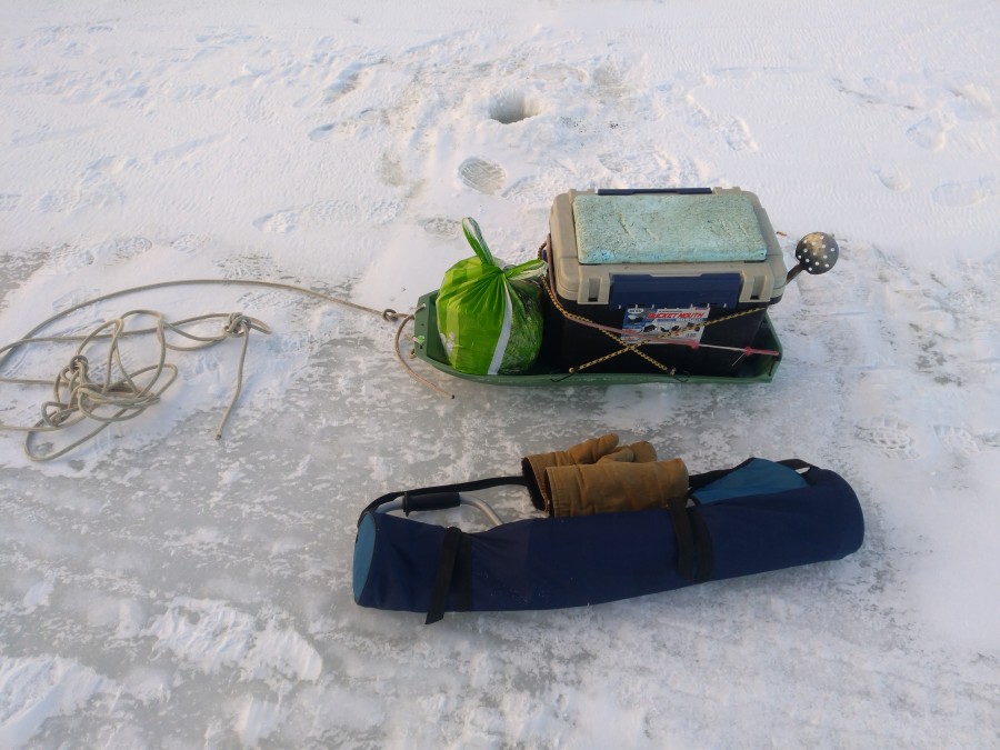 Пришлось палатку сворачивать, искать. В этом районе я её найти не смог. За три часа гуляния кругами не поймал ни одной плотки.У напарника, сидевшего немного дальше от вертепа, клев присутствовал. На его предложение сесть на его закормленую лунку, отказался. Решил идти взад в берег.