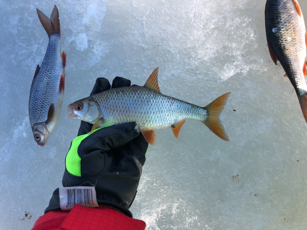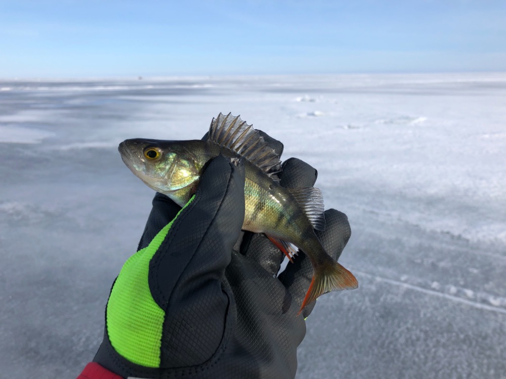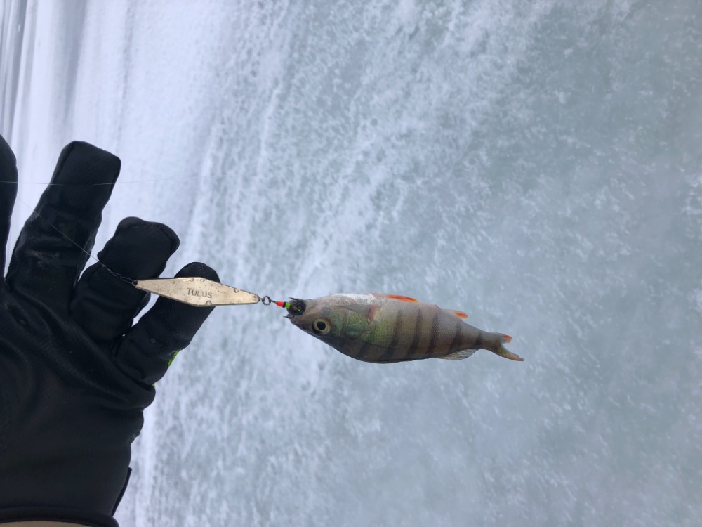 По рыбе надо сказать в этот раз без крупнечка , ловилось только забрасывай , опять же без смены лунок , пробую классическую Вадика секуху , чуток укрупнился окушарик но не сильно .
